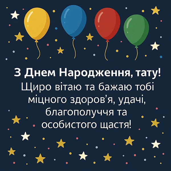 Дорогий тато, бажаю тобі сили, здоров’я, щастя і фінансового достатку. Нехай родина буде твоїм джерелом радості і натхнення.