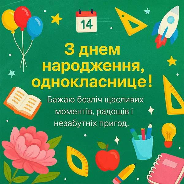 Яскрава картинка привітання з Днем Народження однокласниці (№70)